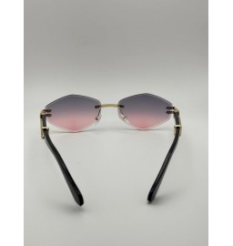 This is a frameless gradient polygonal sunglasses collection that emphasizes an "atmospheric fashion" style. Its core design features "frameless floating lenses + pink-purple gradient tones," breaking away from the constraints of traditional frames and making the lenses the visual focus, exuding a light and eye-catching aura. The gold metal embellishments at the junction of the temples and lenses incorporate geometric lines and delicate textures, strengthening the structural support of the frameless design while adding a touch of understated luxury. The overall style combines "sweet and cool" with "refined elegance," making it not only a practical item for outdoor sun protection but also a finishing touch to creating an atmospheric look—the gradient lenses soften facial contours, and the frameless design adapts to various face shapes, easily meeting different styling needs.