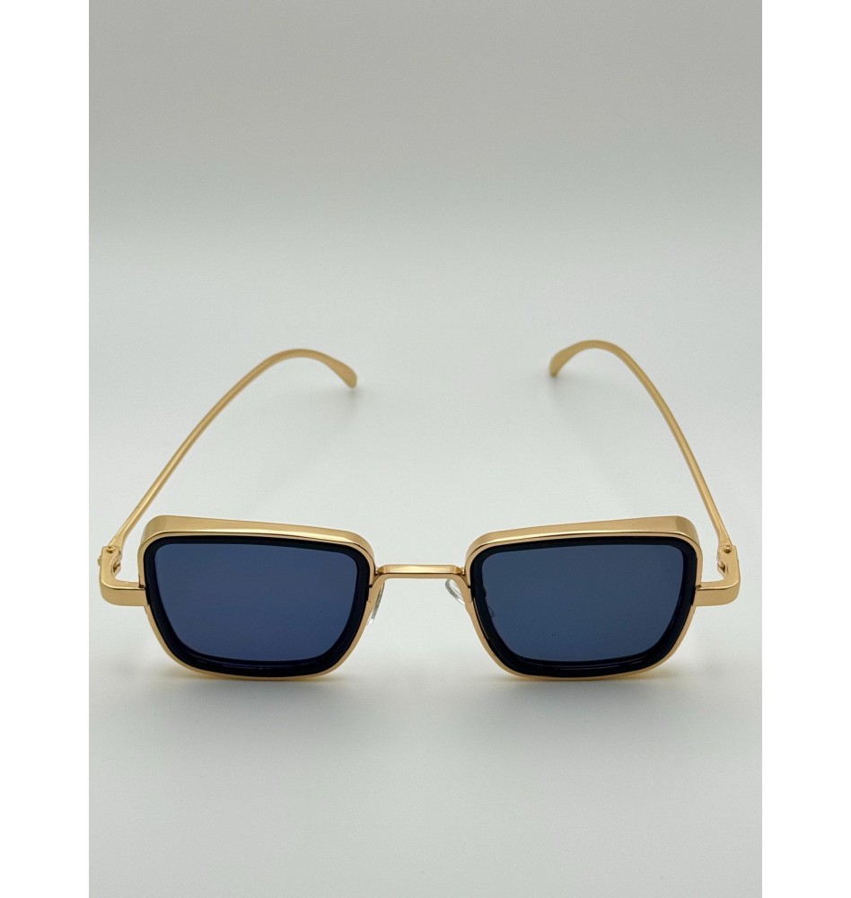 This is a pair of slim-framed square sunglasses that emphasizes a "simple yet sophisticated" look. The visual core is the contrasting combination of a slender gold metal frame and deep dark blue lenses. It retains the retro feel of square frames while the slim design softens the bulkiness, making the overall style more versatile for various occasions.
