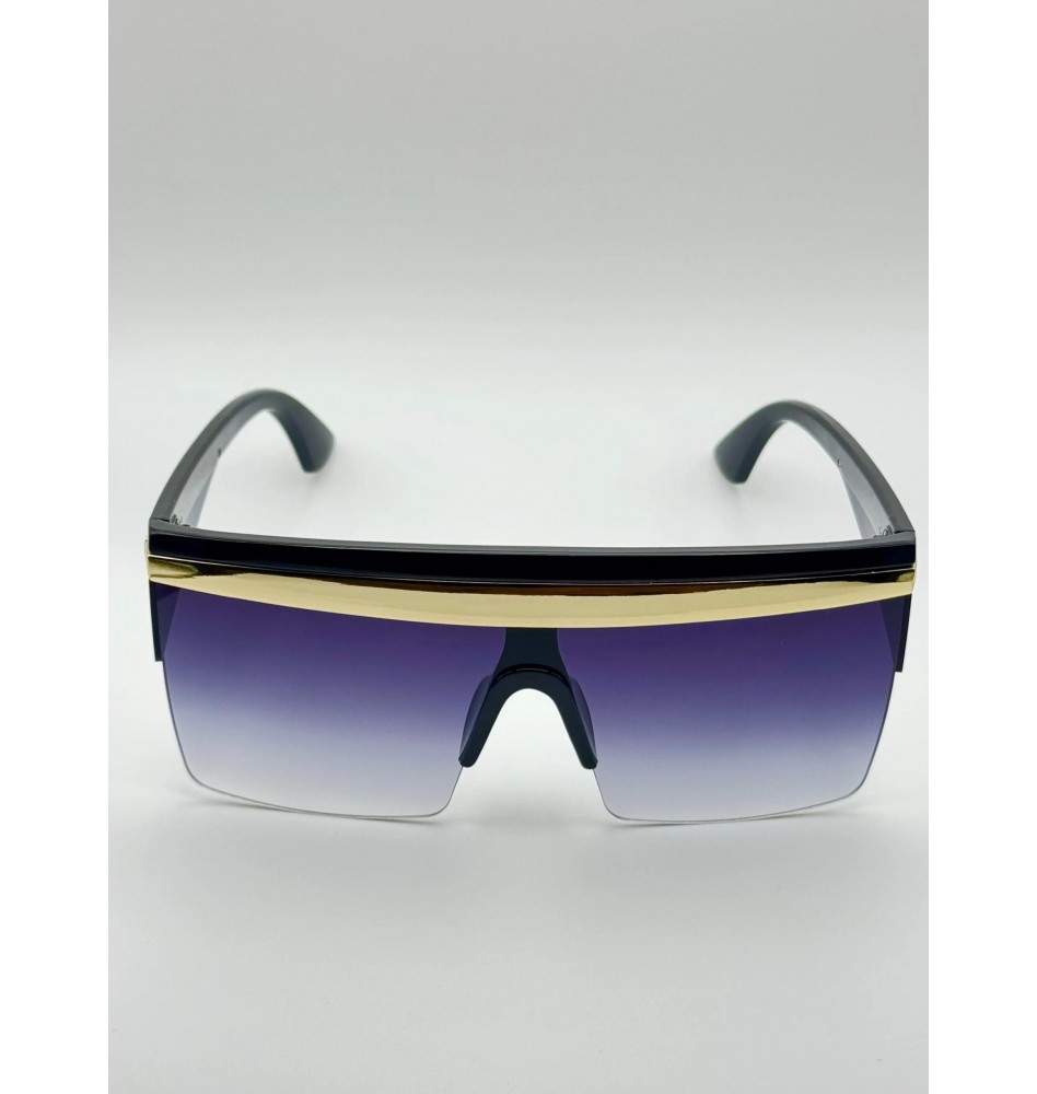 These are wide-rimmed sunglasses that exude a "powerful, futuristic vibe." The core design features a striking black and gold color-blocked wide frame and gradient purple frameless lenses. The ultra-wide frame creates a strong visual impact, aligning with the trend of "large frames flattering the face." The black frame paired with gold trim creates a sophisticated color contrast, softening the heaviness of the wide frame while injecting a touch of understated luxury. The gradient purple lenses transition from a clear light purple to a deep dark purple, providing excellent sun protection in strong light and maintaining visual clarity in low light, making them suitable for outdoor high-light scenarios while adding a "cool and sophisticated" feel to any outfit. It's a key accessory for creating a "street style" and "mature yet chic" look—the wide frame narrows the face, the black and gold color-blocking enhances the sophistication, and the gradient purple lenses add a cool and sophisticated touch, easily making you the visual focus of your outfit.