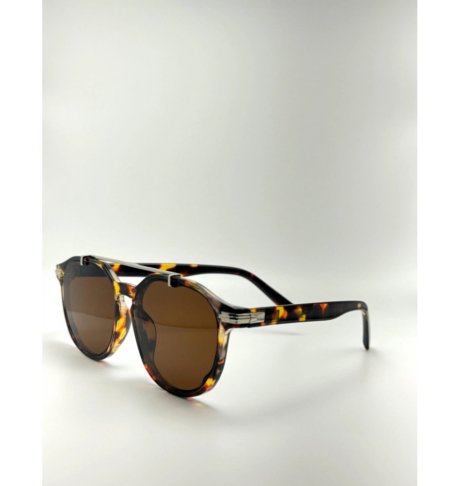 This is a pair of round sunglasses with a brown tortoiseshell pattern, emphasizing a "retro double-bridge, understated luxury feel." The core design features a brown and yellow tortoiseshell acetate frame, retro double-bridge metal embellishments, and light brown soft lenses. The classic round frame softens facial lines (reducing the angularity of a long face and narrowing the contours of a round face), while the double-bridge metal structure enhances the retro vibe, avoiding the monotony of a basic style. The brown tortoiseshell pattern, naturally dyed, presents a warm, retro texture, and the light brown soft lenses offer both UV400 sun protection and soft light transmission, reducing glare in strong sunlight and maintaining visual clarity in low light. It's a versatile "retro + understated luxury" item—the double-bridge design exudes confidence, while the tortoiseshell frame adds texture, easily fitting into various scenarios such as retro commuting, casual dates, and more.